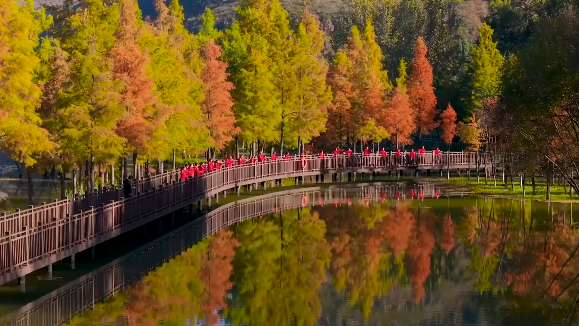 初冬,云南省大理白族自治州洱源县茈碧湖湿地迎来最佳观赏期。晴空之下,水天一色,水杉、栈道、候鸟同时入镜,冷暖色调相互映衬,形成了一幅色彩斑斓的山水画卷,吸引了众多游客前来观赏。