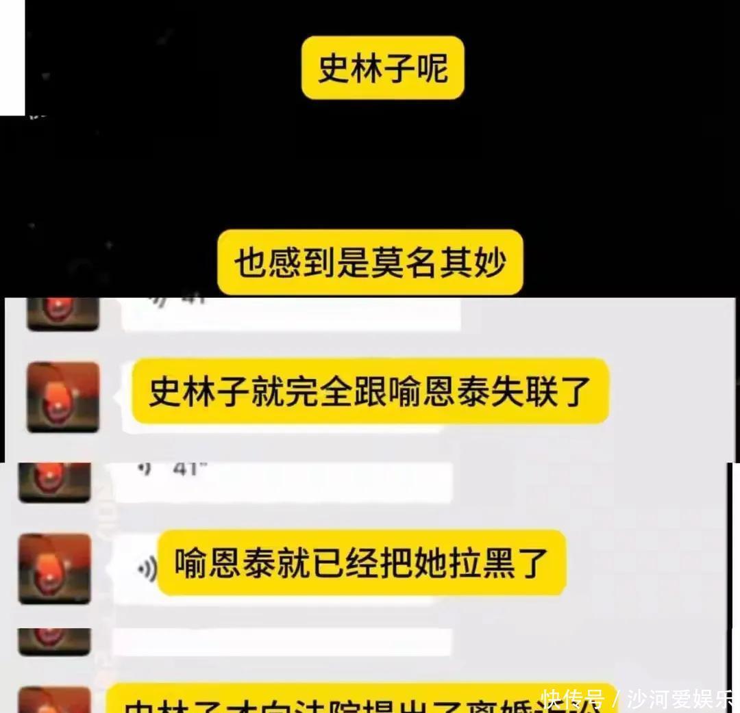 最让人无法理解的是,前几个月喻恩泰直接拉黑了史林子,彻底失联,这才让她下定决心起诉离婚。